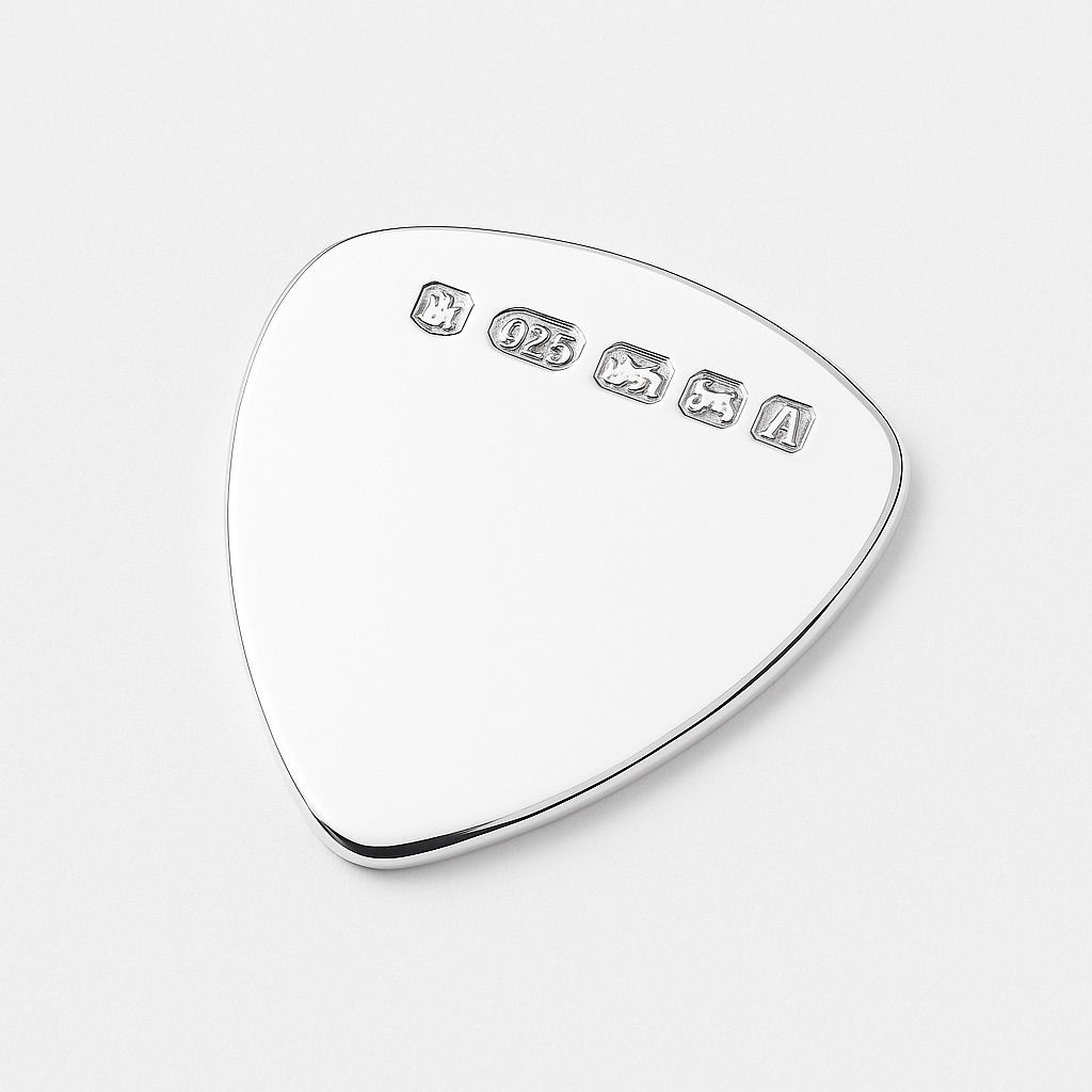 Sterling Silver Plectrum. This silver plectrum will make a great gift for a person playing the guitar. The silver plectrum (guitar pick) is a durable accessory which provides a unique, bright, and harmonically rich tone compared to plastic picks. This sterling silver plectrum is highly polished and can be engraved with initials or name if required.